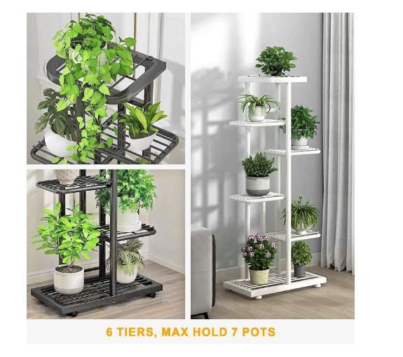 Amazon Com Maisonpex 6 Tier Tall Metal Plant Stand With Detachable Wheels Half Moon Shape Ladder Plant Stands For Indoor Plants Multiple Black Plant Rack For Home Patio Lawn Garden Balcony Holder